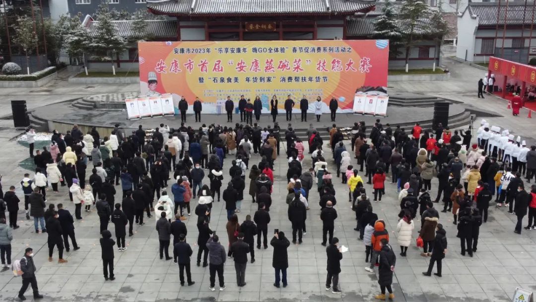 1月15日,安康市首屆“安康蒸碗菜”技能大賽暨“石泉食美 年貨到家”消費幫扶年貨節在石泉楊柳秦巴風情園啟動。安康市政協副主席、安康富硒美食產業鏈鏈長唐紋宣布活動正式啟動。