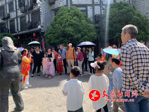 “各位游客大家好,我是自石泉縣城關一小的小小講解員,歡迎大家跟隨我的腳步游覽石泉秦巴老街”。這五一假日期間從石泉秦巴老街里傳來的朗朗童聲,來自“小小講解員·童音話石泉”——石泉縣全域旅游紅領巾講解員培訓班的小朋友們用稚嫩且熟練的話語、自信的神態向往來游客們介紹了石泉老街東西城門、石泉縣衙、禹王宮、江西會館以及老街上的美食,小小講解員各個儀態大方、表達清晰、發揮自如,贏得了游客們駐足圍觀,時不時傳來陣陣掌聲和夸獎。