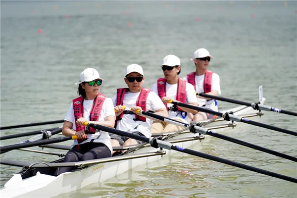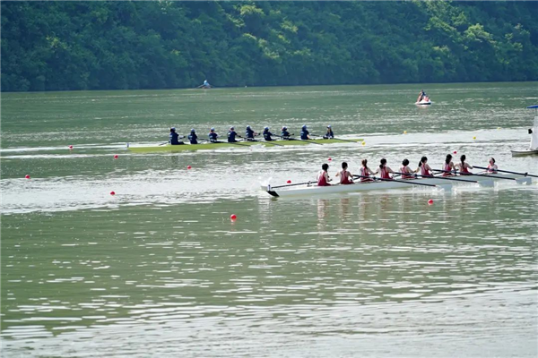隨著鳴笛聲響起,參賽選手們奮力劃槳,艘艘劃艇飛速駛出,劈波斬浪,盡顯水上運(yùn)動的獨(dú)特魅力。