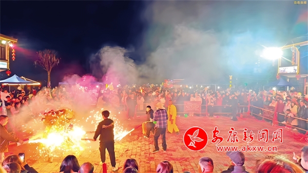 池河鎮系列非遺民俗活動從大年三十開始,一直持續到正月十五,每晚在明星村醉美桑海景區游客中心舉行,其中以燒獅子最為熱鬧。燒獅子的花筒簡稱花,“花”與“發”諧音,獅子“要花”即是“要發”的意思。合著樂隊鑼、鼓、鈸三大件樂聲大起,獅子搖頭擺尾舞動,煙花爆竹交融,騰挪跳躍,越舞越猛,真可謂“金花四射神獅舞,電閃雷鳴映長空”。LQZ安康新聞網