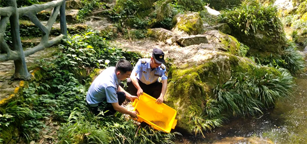 石泉公安:警民攜手將“娃娃魚”放生回歸大自然
