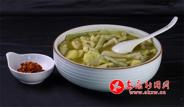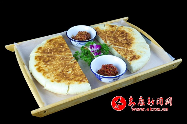 “甜酒火燒饃”,是石泉縣幾代人美食智慧的積累,傳承至今,是深受人們喜愛的小吃。它是采用古老傳統老酵面加甜酒發面,將老酵面、甜酒加入溫水后,再加入面粉一起攪拌均勻后再揉面。把面團揉制光亮后放置幾小時待其自然發酵。等到面團成發泡蜂窩狀態,才可以開始將面團做成圓形,在用搟面杖搟薄圓形面團放入柴火灶鍋中,撒上芝麻,小火炕制一面黃在翻面炕制兩面色澤金黃。吃進嘴里有小麥淡淡的清香味,也有甜酒的甜香味,回味無窮。杜光發制作的這道小吃獲得安康市2024年“安康味道”名小吃。W3V安康新聞網