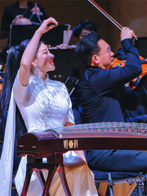 教學與生活交織的間隙,她更將古箏化作安康遞給世界的一張閃亮名片。數年來,唐曉敏屢次受邀參加國內外各種文化交流活動。從韓國、泰國摘得國際金獎,到維也納金色大廳新年交響音樂會,再到北京中山堂《瑤族舞曲》領奏、央視建黨百年舞臺……她的箏聲跨越山海。2023年,作為“中阿國際文化大使”及中華箏樂團代表,她在阿聯酋奏響友誼樂章;今年的戛納國際電影節“中國之夜”上,她以古箏向世界詮釋中華魅力。