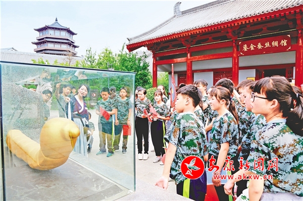 “請大家看,這就是放大了的鎏金銅蠶模型”周末假期,在石泉縣蠶桑博物館內,來自外地的游客們正在聽取蠶桑歷史文化的講解。