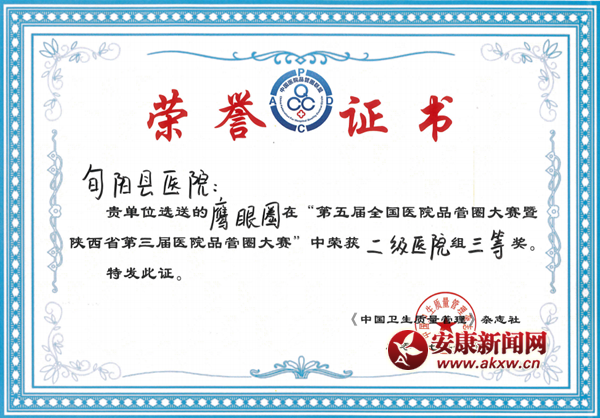 該品管圈活動在今年6月份的等級醫院現場評審中,受到了專家評委的好評。此次的獲獎,更意味著在全院護理同仁的共同努力下,縣醫院對新理念、新方法的探索與實施結出了豐碩的果實。czJ安康新聞網