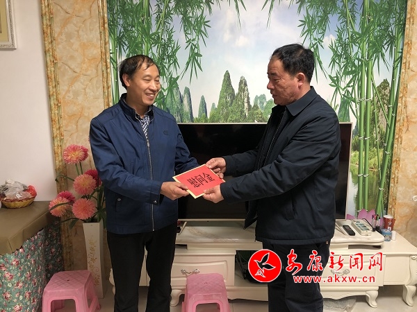 本網(wǎng)訊(通訊員 萬百惠)3月17日,平靜的小區(qū)里熱鬧起來,雙河鎮(zhèn)武裝部組織人員來到參加蘇丹維和任務現(xiàn)役軍人張灶的家中,送來慰問金和親切的問候。