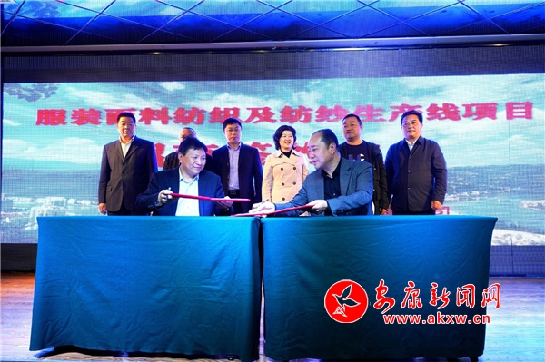 本網訊(通訊員 張偉 李宏飛 強朝輝)4月15日下午,旬陽縣與俄羅斯黃金紡織公司簽訂總投資3.6億元服裝面料紡織及紡紗生產線項目。Btw安康新聞網