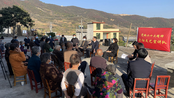 報告會后,安康市委宣講團(tuán)還深入白柳鎮(zhèn)老龍溝村,與群眾面對面互動交流。旬陽文藝宣講隊在現(xiàn)場表演節(jié)目對口快板《二十大精神指航向》《禮贊旬陽頌黨恩》、二重唱《黨的二十大精神領(lǐng)航程》等節(jié)目,將黨的二十大精神直觀、生動地展現(xiàn)在群眾面前,讓基層宣講沾泥土、接地氣,推動黨的二十大精神走進(jìn)千家萬戶。