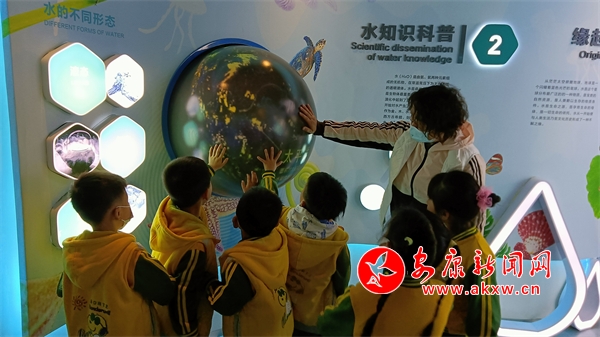小朋友們走進水文化館,立即被神奇的“生命之源”所吸引,精致的浮雕、科技感濃重的電子屏幕等展項都牢牢讓小朋友們注目觀看。通過觀看水文化科普系列動漫宣傳視頻,使小朋友們近距離體驗到水文化的魅力和水利科技科普。解說員積極和小朋友互動,通過現場問答、操作互動電子屏等多種方式,讓孩子及家長們了解了我國的水歷史、水狀況等內容,更加清楚地了解關于漢江和旬河的知識。同時引導小朋友們樹立從小“愛水、惜水、節水”意識,倡導規范用水、合理用水,用實際行動讓節約用水成為一種新時尚。