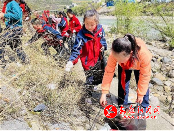 活動中,師生統(tǒng)一著裝,戴著手套,拿著塑料袋和火鉗等工具,沿著指定路線到達旬河邊安全區(qū)域。大家或一二結對相互配合,或三五成群分工協(xié)作,有的撿、有的夾、有的挖,都忙得不亦樂乎,通過兩個小時的努力,河道周圍煥然一新。