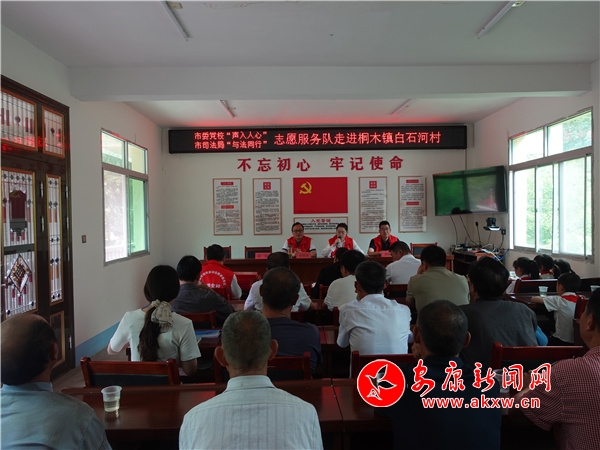 本網訊(通訊員 李丹)近日,旬陽市司法局“與法同行”和市委黨校“聲入人心”志愿服務隊走進桐木鎮白石河村,白石河村全體黨員、群眾代表、學生50余人參加活動。