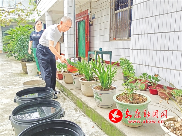 王清芬夫婦用淘米、洗菜水澆花xhT安康新聞網