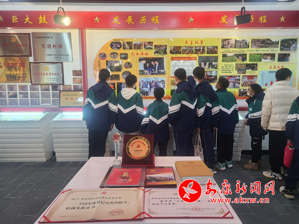 “耳聞之不如目見之,目見之不如足踐之,這幅圖,拍的就是當年正在建設的村道”“這幅圖,是曾經的小學課堂,上課用的都是煤油燈……”村史館,陳分新利用“看圖講故事”這種喜聞樂見的方式對王院村日新月異的發展變化娓娓道來,指到哪兒,講到哪兒,他講的認真,同學們也聽的專心,一堂別開生面的“歷史課”在王院村史館生動展開。