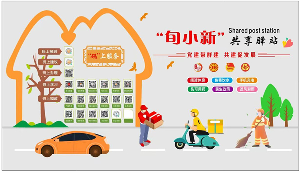 “旬小新”共享驛站按照“黨建帶群建 共建促發(fā)展”思路,秉持“需求前置、服務(wù)賦能”理念,通過(guò)整合行業(yè)部門、企業(yè)、社會(huì)三方資源,著力構(gòu)建“15分鐘暖新服務(wù)生態(tài)圈”,為快遞員、外賣騎手等新就業(yè)群體提供閱讀休息、免費(fèi)飲水、手機(jī)充電、應(yīng)急藥箱等18項(xiàng)基礎(chǔ)服務(wù)設(shè)施。