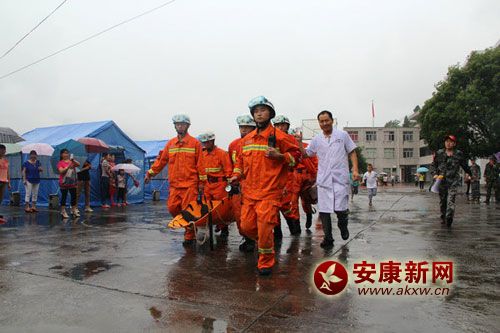 安康新網訊 通訊員 劉沖:為提高全縣應對突發性地質災害應急處置能力,7月11日,旬陽縣在段家河鎮開展地質災害應急實戰綜合演練。演練以段家河集鎮后坡山體因持……