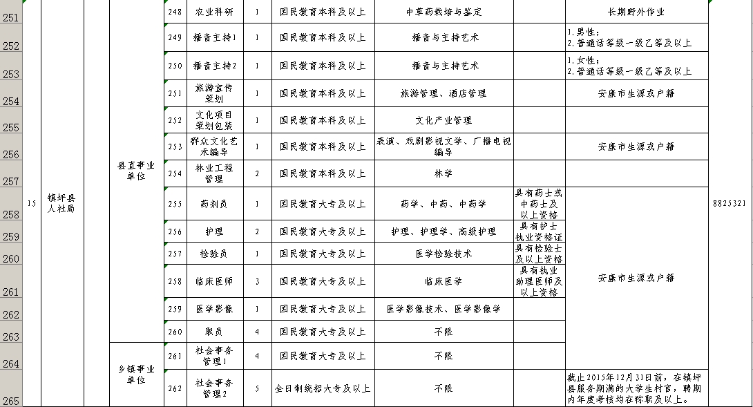 按照安康市2015年事業單位面向社會公開招聘工作人員公告的安排,鎮坪縣人社局精心開展該縣2015年事業單位公開招聘工作人員的活動。此次招考,鎮坪縣共設置了37個崗位,其中 3個崗位專業不限,11個崗位大專學歷即可報考,考試報名時間為2015年9月19日08:00--2015年9月22日18:00,歡迎社會各界積極報考。fAZ安康新聞網