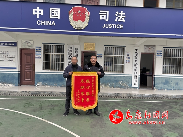 本網訊(通訊員 武勇)近日,貴州籍農民工楊某某在調解協議書上簽字后,滿臉笑容地向鎮坪縣牛頭店司法所工作人員送來了一面印有“盡職盡責 熱情服務”的錦旗,這面錦旗凝聚著群眾的信任與真情。eaU安康新聞網