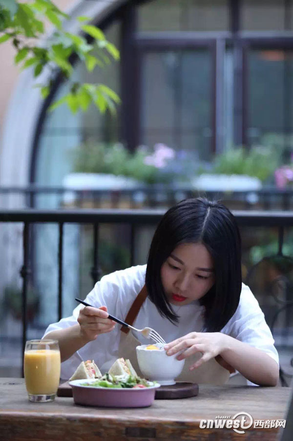 OO享用自己精心制作的早餐。有一個地地道道的鎮坪妹子,每天都在網上曬她自己做的早餐,天天不重樣營養美味還藝術的早餐引來無數粉絲。這位戲稱自己患上了早餐強……