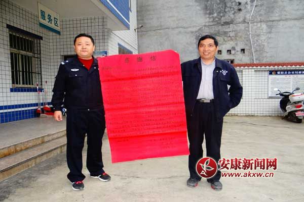近日,紫陽縣麻柳鎮青巖村村民鄒某與家人一道將一面“一心為民,排憂解難”字樣的錦旗送到了麻柳鎮派出所,對該所成功抓獲犯罪嫌疑人,幫助自己挽回經濟損失15000余元表示感謝。vMk安康新聞網