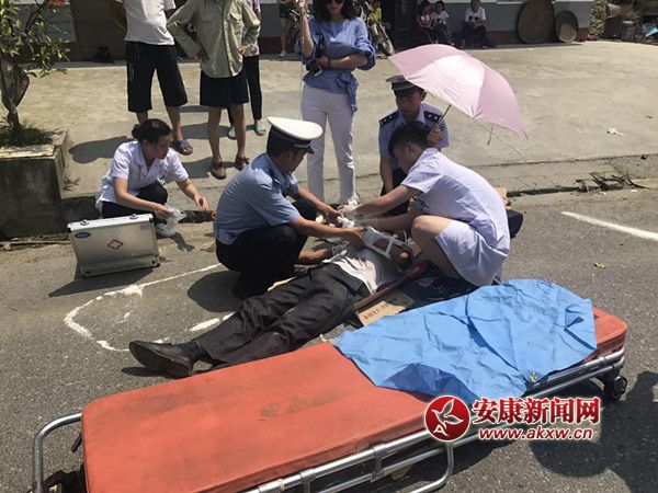 安康新聞網(wǎng)訊(通訊員 楊超)6月18日,紫陽公安局權(quán)河交警中隊民警接群眾報案,稱310省道98公里處一輛摩托車與中巴車相撞,摩托車司機頭部受傷,情況危殆。接報后,民警迅速趕赴事故現(xiàn)場發(fā)現(xiàn),碰撞后摩托車被甩至路邊,大梁及車頭解體,零部件碎片散落一地,摩托車駕駛員俯臥在公路中心線位置,頭部血流不止,左手不能移動。傷員傷情無法確定,省道通行受阻極易發(fā)生二次事故,時間每過一分鐘便多一分危險,一系列不利因素擺在民警眼前,現(xiàn)場情況十分緊急!民警冒著烈日迅速與醫(yī)護人員立即展開救護行動:一是在現(xiàn)場設(shè)置警示標志、劃定管制警戒區(qū);二是民警與醫(yī)護人員一起對傷者進行現(xiàn)場救治,再由救護車將傷者送院治療。由于警民的通力合作,有效地防止了二次事故的發(fā)生,為傷者的救治贏得了寶貴的時間。紫陽公安局權(quán)河交警中隊民警爭分奪秒搶救受傷群眾,使傷者脫離生命危險。