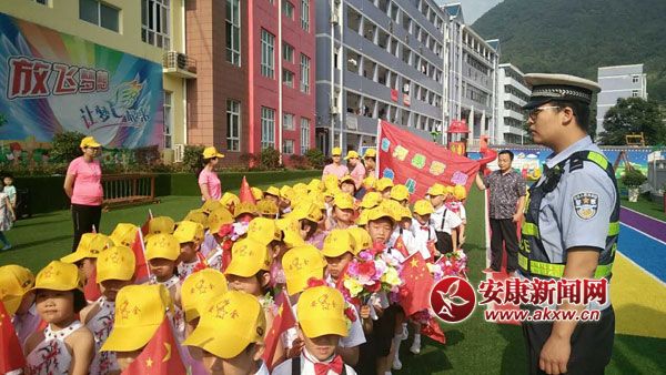 白河交警為學生們并佩戴安全小黃帽