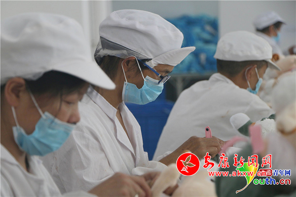 不過仍有部分人不能或不愿外出務工,他們又該如何增收?毛壩鎮(zhèn)瞄準了毛絨玩具生產(chǎn)加工,利用建設安置點形成的空閑場地,在2018年9月從江蘇揚州引進迪鑫玩具工廠,該廠于當年11月上旬正式開工生產(chǎn)。edj安康新聞網(wǎng)