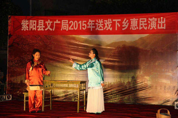 安康新聞網訊 (通訊員 唐 波 毛 潤)“聽說晚上有演出,大家都很高興,我們全家老少都來了。”8月25日,紫陽縣“送戲下鄉”巡回演出團來到了該縣蒿坪……