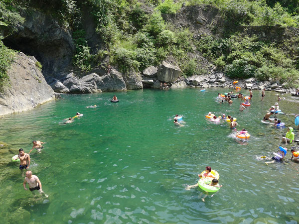 隨著氣溫的升高和炎炎夏日的到來,紫陽縣聯合鎮盤廂河每天有絡繹不絕的游客前來避暑戲水納涼,河水里如同“下餃子”一般,河水里全是密密麻麻的人群在游動。(通……