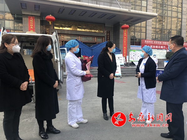 本網訊(記者 魏濤)2月11日,市委常委、組織部部長高晶華,副市長楊淼分別慰問我市馳援武漢的醫護人員家屬,為他們送去鮮花和慰問金。市衛健委、市婦聯相關負責同志一同慰問。