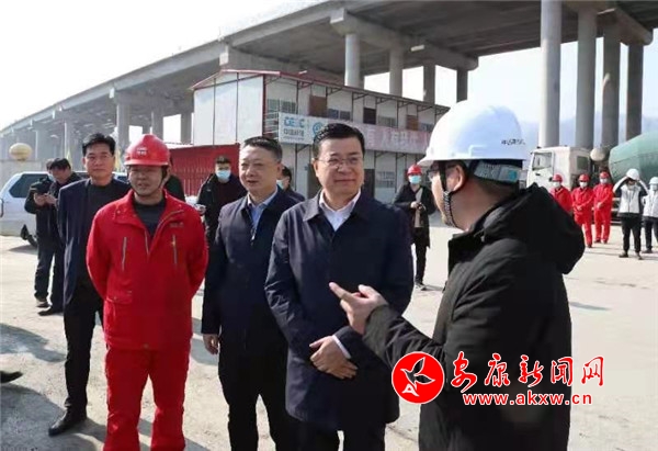 在北環線施工現場,高晶華指出,北環線建設是拉大城市骨架、提升通行順捷、疏解城市壓力的控制性工程。項目開工以來,大家心懷筑路夢,不畏艱與辛,主體工程推進順利,市委、市政府和全市人民對你們表示敬重和感謝。希望大家搶抓時機,排除困難,保障質量,安全施工,確保如期建成通車。t7A安康新聞網