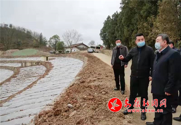 (武文罡在漢濱區瀛湖鎮郭家河村調研高標準農田建設情況)