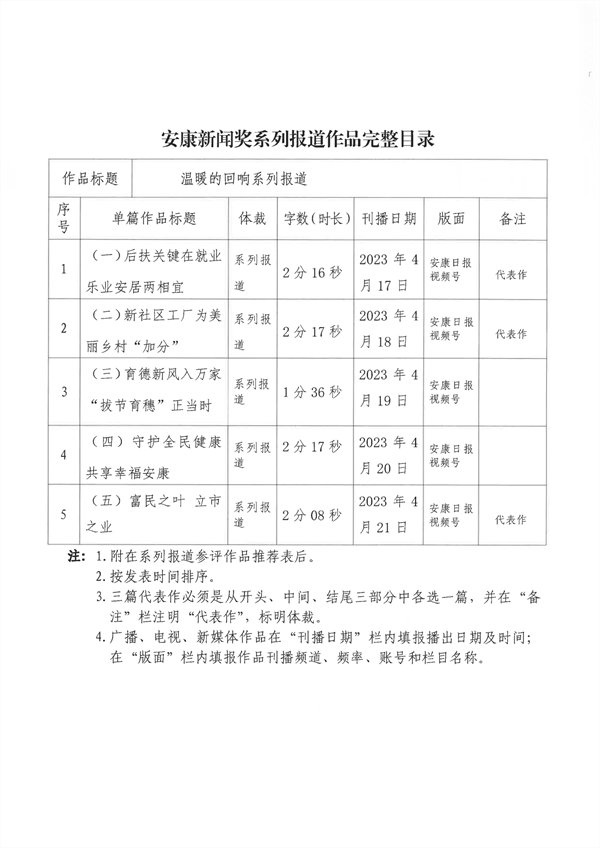 經過編委會推薦、社黨委研究決定,擬推薦以下13件新聞作品參評2023年度“安康新聞獎”。公示時間從2024年3月25日至2024年3月29日,公示期為5個工作日。如有不同意見,請向安康日報社機關紀委、新聞管理部反映。nyB安康新聞網