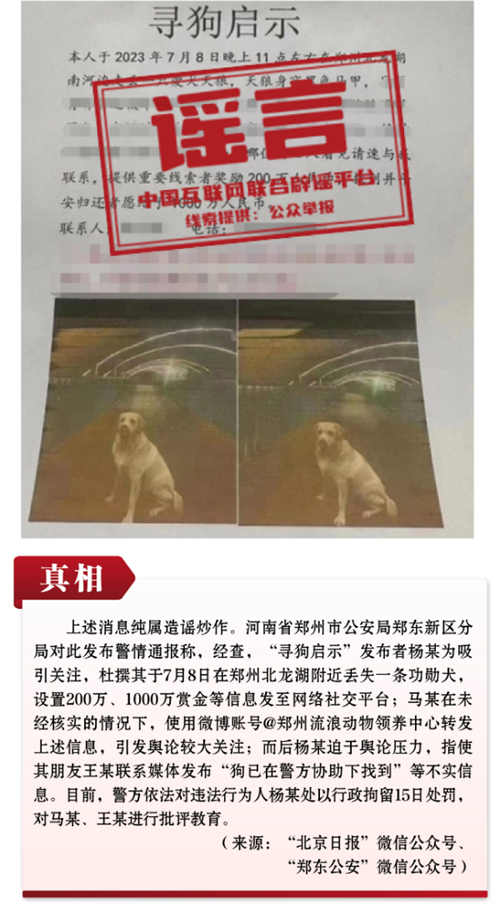 謠言9:鄭州有人懸賞1000萬尋找丟失愛犬?siQ安康新聞網(wǎng)