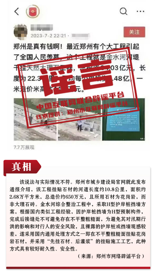 謠言7:鄭州花34億給22公里河道貼大理石磚?siQ安康新聞網(wǎng)