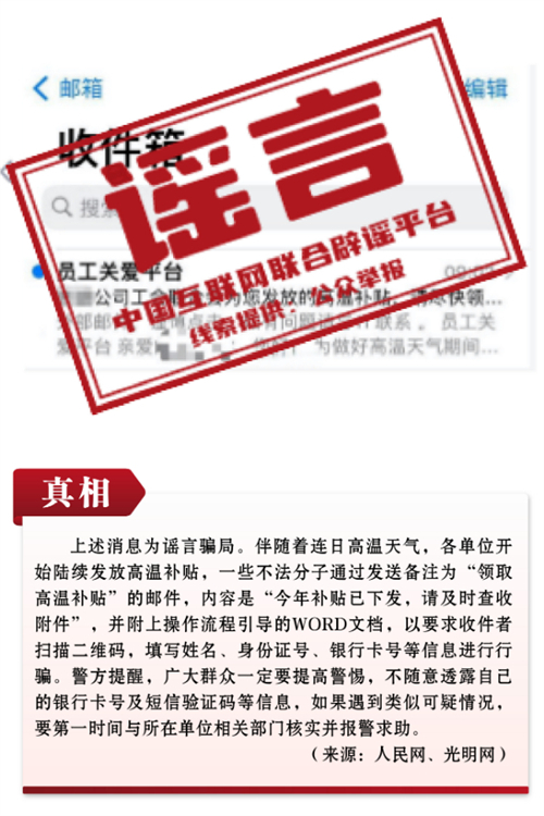 謠言10:掃描二維碼領(lǐng)取“高溫補(bǔ)貼”?siQ安康新聞網(wǎng)