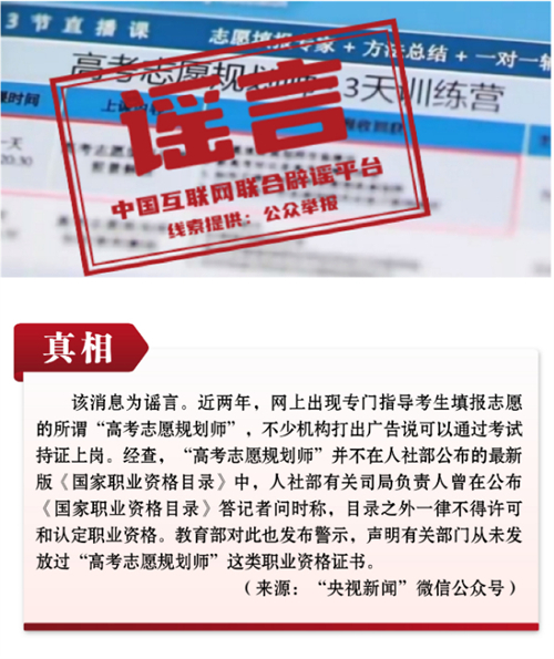 謠言3:培訓(xùn)3天就能拿到“高考志愿規(guī)劃師”證書上崗?siQ安康新聞網(wǎng)