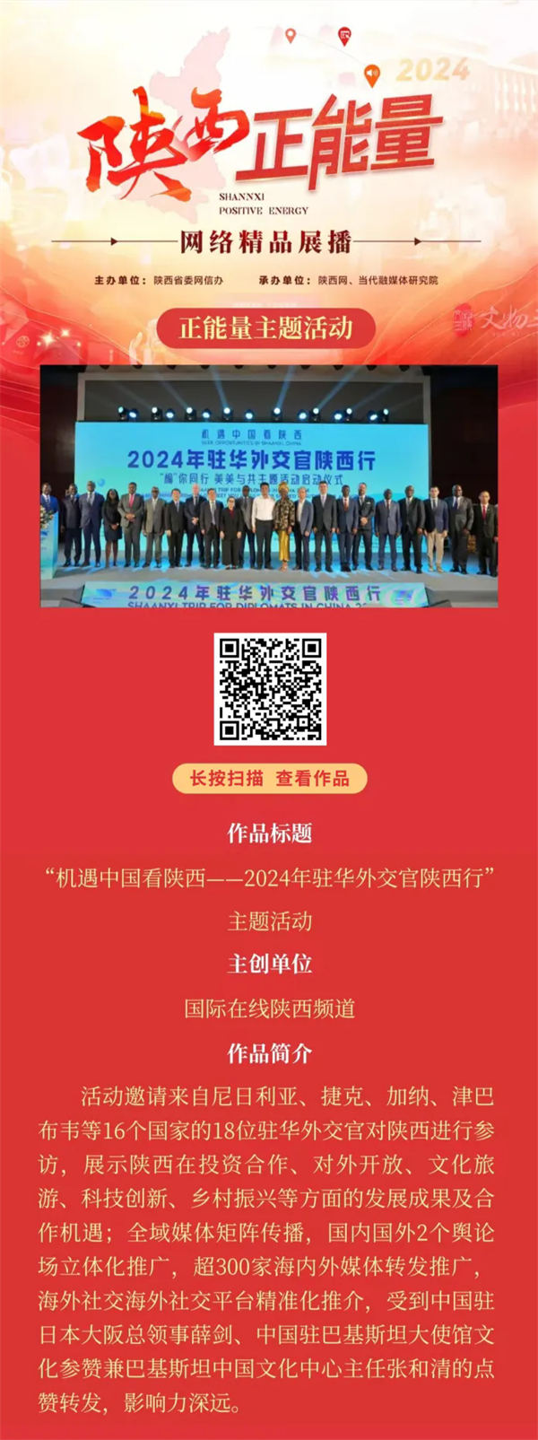 2024陜西正能量網絡精品展播丨正能量主題活動:機遇中國看陜西——2024年駐華外交官陜西行主題活動