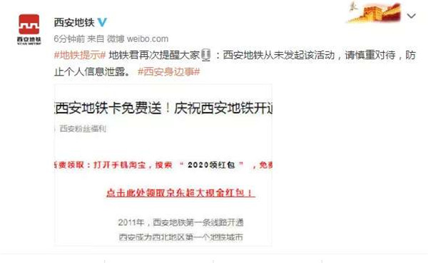 在此,地鐵君又雙叒叕一次提醒大家:西安地鐵從未發起該活動,請慎重對待,防止個人信息泄露。