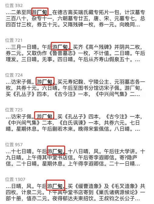 第三,雖然魯迅作為鐘愛琉璃廠舊書肆的文人,日記中自述經(jīng)常去琉璃廠,但“逛琉璃廠”并非魯迅的表達(dá)風(fēng)格,“游廠甸”“往琉璃廠”“至琉璃廠”才是魯迅的表達(dá)風(fēng)格。