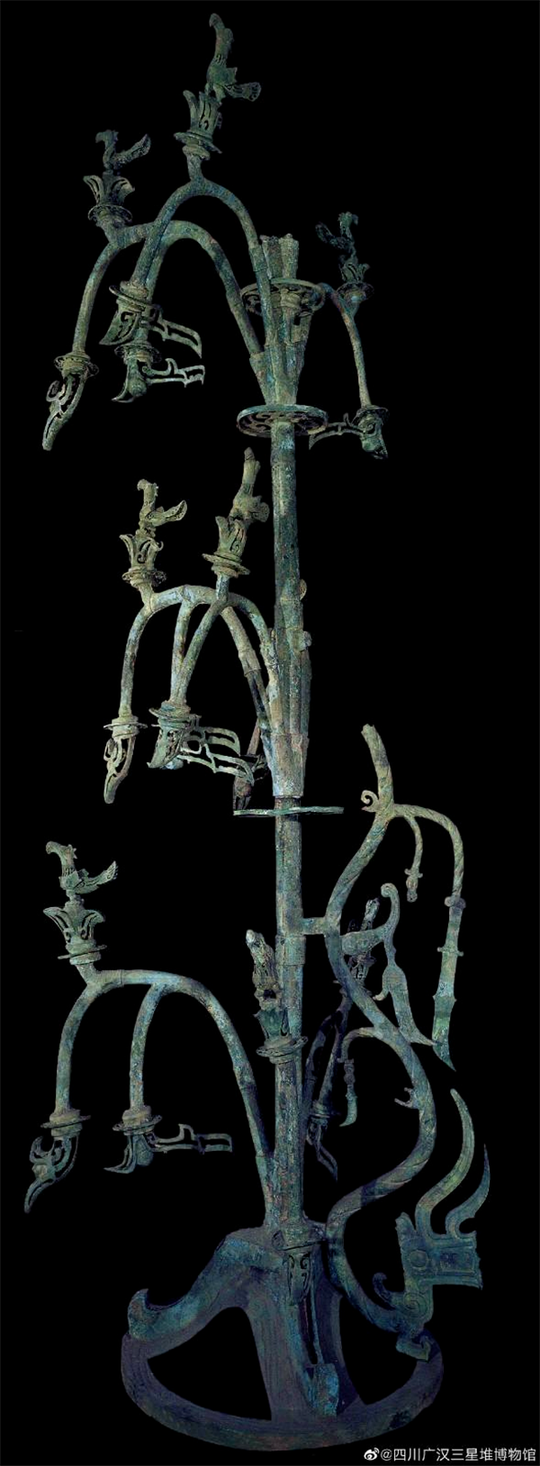 三星堆二號祭祀坑出土的青銅神樹。圖據(jù)三星堆博物館JuC安康新聞網(wǎng)