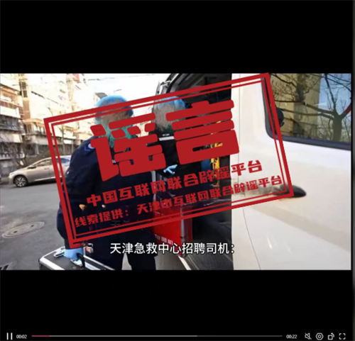 真相:近期,有網(wǎng)民在某短視頻平臺發(fā)布天津市急救中心救護車駕駛員招聘信息。經(jīng)核查,天津市急救中心近期沒有駕駛員招聘計劃,該信息不屬實,系網(wǎng)絡(luò)謠言。且該用戶在中心不知情情況下擅自利用中心員工工作照片進行虛假宣傳,造成惡劣影響。(來源:“天津辟謠”微信公眾號)Fcr安康新聞網(wǎng)