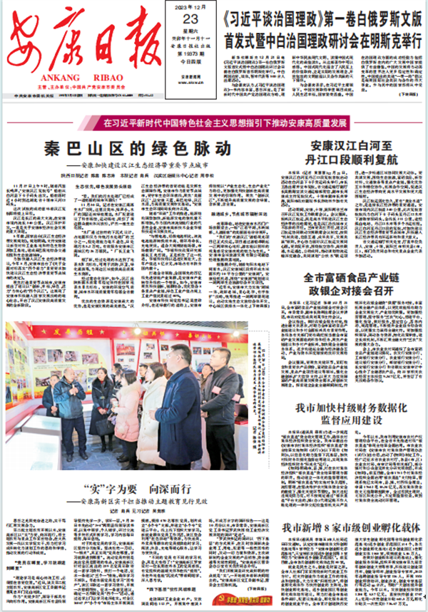 (2023年12月23日安康日報01版陜西日報、安康日報、縣級融媒體中心記者三級聯動《秦巴山區的綠色脈動——安康加快建設漢江生態經濟帶重要節點城市》)ySv安康新聞網