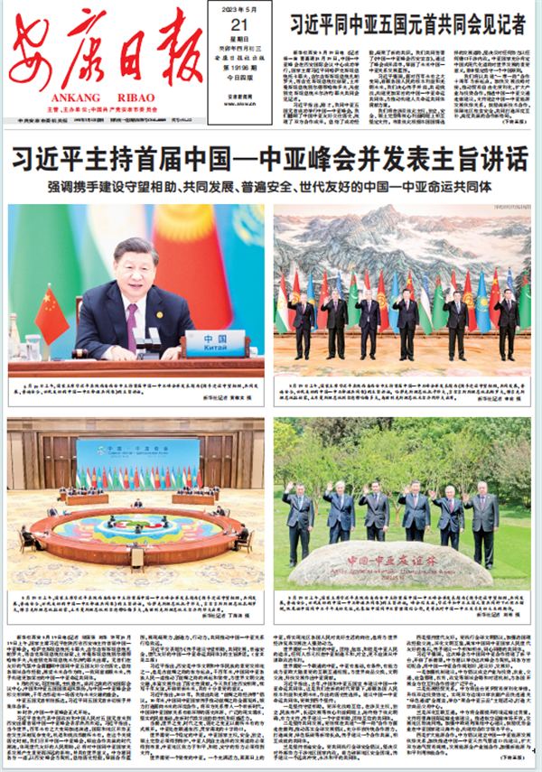 (2023年5月21日安康日報01版《習近平主持首屆中國——中亞峰會并發表主旨講話》)ySv安康新聞網