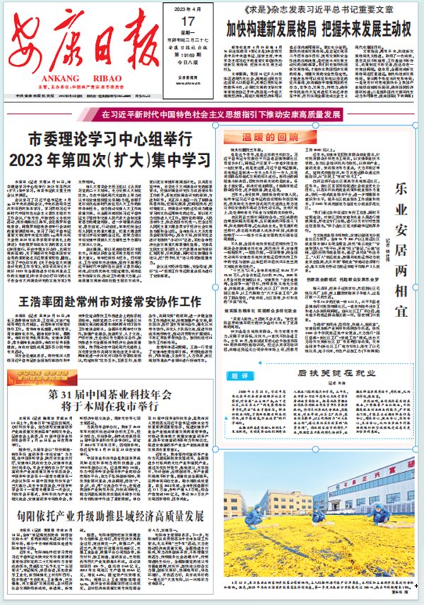 (2023年4月17日安康日報01版開設“在習近平新時代中國特色社會主義思想指引下推動安康高質量發展”“溫暖的回響”欄目)ySv安康新聞網