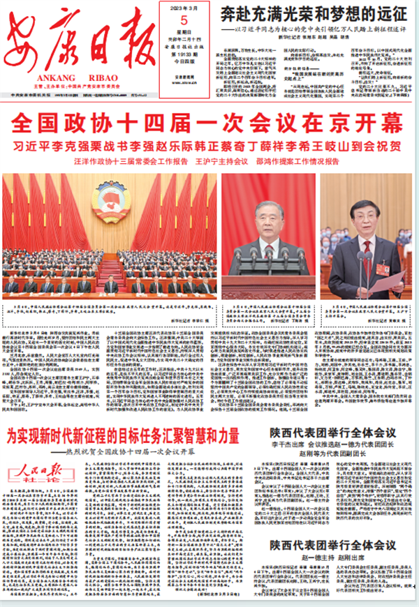 (2023年3月5日安康日報01版《全國政協十四屆一次會議在京開幕》)ySv安康新聞網