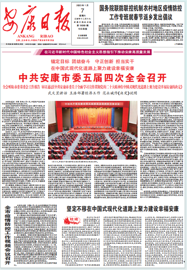 (2023年1月7日安康日報01版《中共安康市委五屆四次全會召開》)ySv安康新聞網