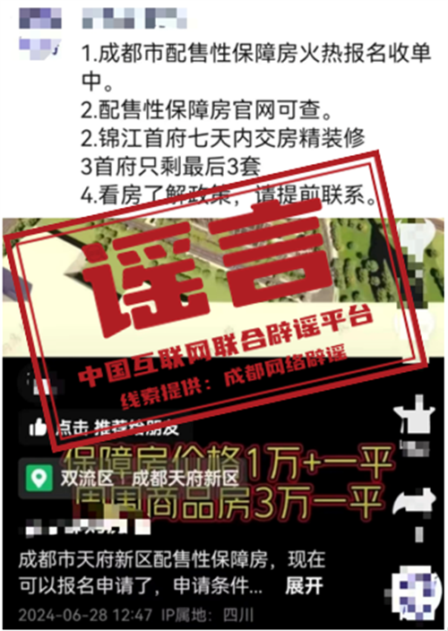 辟謠:成都市有配售型保障性住房、經(jīng)濟適用房在售?謠言!