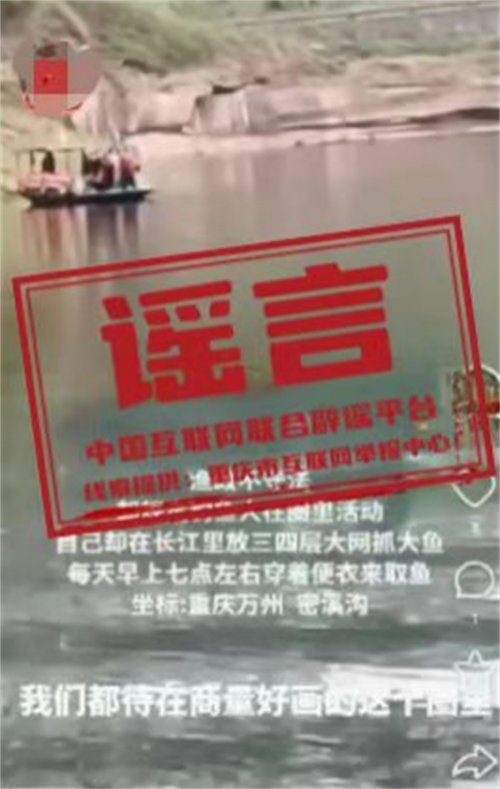 真相:近日,有網民發布視頻稱“重慶萬州漁政人員知法犯法,在長江里放網抓魚”,引發關注。經當地網信部門核實,該信息為謠言。網傳視頻由兩方面內容拼接而成,一張是漁政執法人員乘執法艇日常巡航的畫面,另一張是人員駕駛船舶正實施捕撈行為的畫面,其中的捕撈行為系重慶三峽職業學院實施的科研調查專項捕撈。該專項捕撈于2023年12月經重慶市農業農村委批準,捕撈及監測過程中均有漁政執法人員現場監管,并全過程記錄,未發現存在違法違規行為。(來源:“重慶辟謠”微信公眾號)