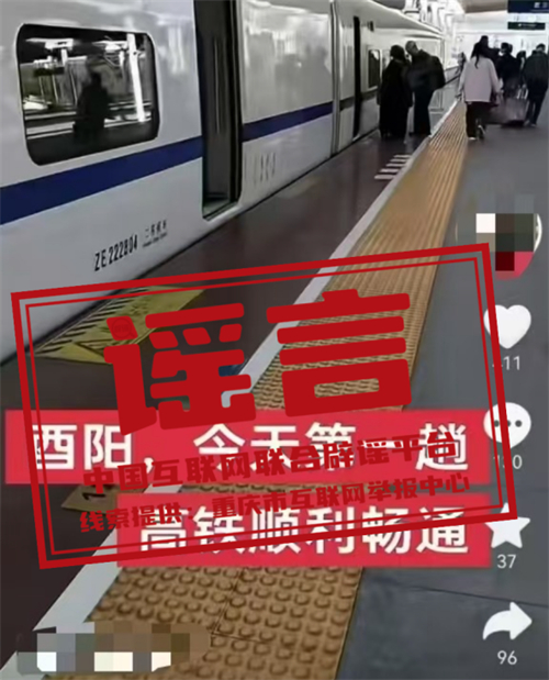 真相:近日,某網民在互聯網平臺發布信息稱“酉陽,今天第一趟高鐵順利暢通”,引發關注。經核實,網傳信息系謠言,酉陽縣暫未建成高鐵站。根據建設計劃,黔吉高鐵重慶段將于年內開工建設,線路貫穿黔江區、酉陽縣、秀山縣三地,線路全長約224.2km,全線設置車站3座,整個建設工期大概5年左右,預計在2030年之前全面建成通車。目前,警方已對造謠者展開調查。(來源:“重慶辟謠”微信公眾號)93S安康新聞網
