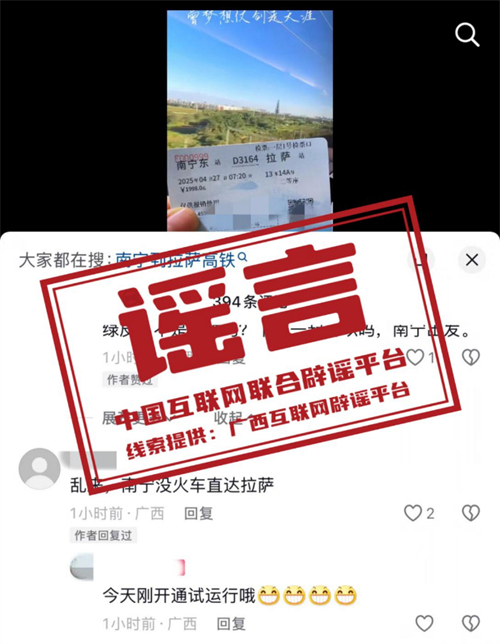 辟謠:“廣西南寧開通直達西藏拉薩的動車”不實